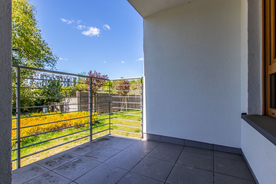 Balkon–loggia częściowo zadaszony – idealny na odpoczynek o każdej porze roku.